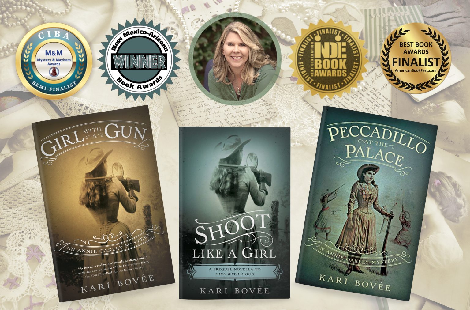 Book Title: Girl with a Gun (An Annie Oakley Mystery) by Kari Bovee Category: Adult Fiction (18 + yrs), 316 pages Genre: Historical Mystery Publisher: Bosque Publishing Release date: April 2020 Tour dates: June 22 to July 10, 2020 Content Rating: R for one explicit sex scene. There is some swearing, violence, mature themes. Book Description: In an exciting new historical mystery series, award-winning author Kari Bovee brings the beloved American icon, Annie Oakley, into the world of mystery and crime as a plucky, amateur sleuth. Fifteen-year-old Annie Oakley is the sole supporter of her widowed mother and two younger siblings. An expert markswoman and independent spirit, she hunts game to sell to the local mercantile to make ends meet instead of accepting a marriage proposal that could solve all her problems, including the impending foreclosure of her family's farm. After a stunning performance in a shooting contest against famous sharpshooter Frank Butler, Annie is offered a position in the renowned Buffalo Bill’s Wild West Show. Finally, she has a chance to save her family's farm--and make her dreams come true. But after her catapult to fame, a series of crimes takes place in the Wild West Show, including the death of Annie's Indian Assistant. The coroner claims the death was due to natural causes, but Annie is unconvinced. Then her prized horse, Buck--a major part of her act--is stolen, and she realizes that someone is out to get her. With the help of a sassy, blue-blooded reporter, Annie sets out to find her horse, solve the crimes, and clear her good name--before everything she's worked for is destroyed.
